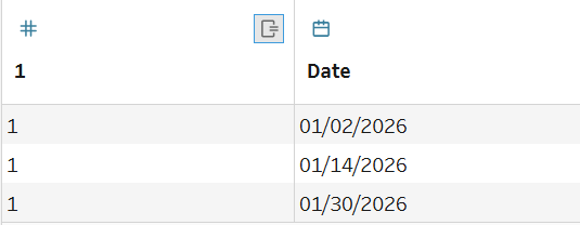 Now add rows for every date of January, and assign a value of 0 to the '1' column: